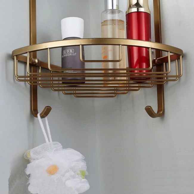 Comprar Prateleiras 2 Camada De Metal Antigo Chuveiro do banheiro Canto Prateleira Suporte De Parede Shampoo Banheiro Cesta de Prateleira de Armazenamento De Rack Titular MJ 7011 Baratas Online Preço