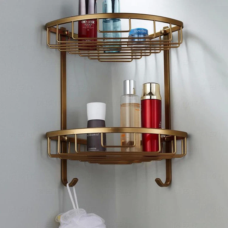 Comprar Prateleiras 2 Camada De Metal Antigo Chuveiro do banheiro Canto Prateleira Suporte De Parede Shampoo Banheiro Cesta de Prateleira de Armazenamento De Rack Titular MJ 7011 Baratas Online Preço.