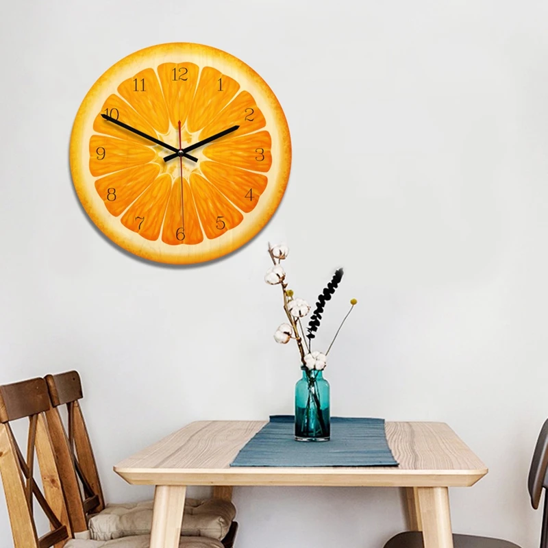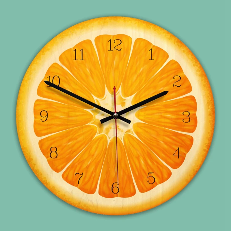 Comprar Relógio de parede criativo, relógio decorativos de madeira minimalista Europeu, Seção de frutas Laranja Baratas Online Preço