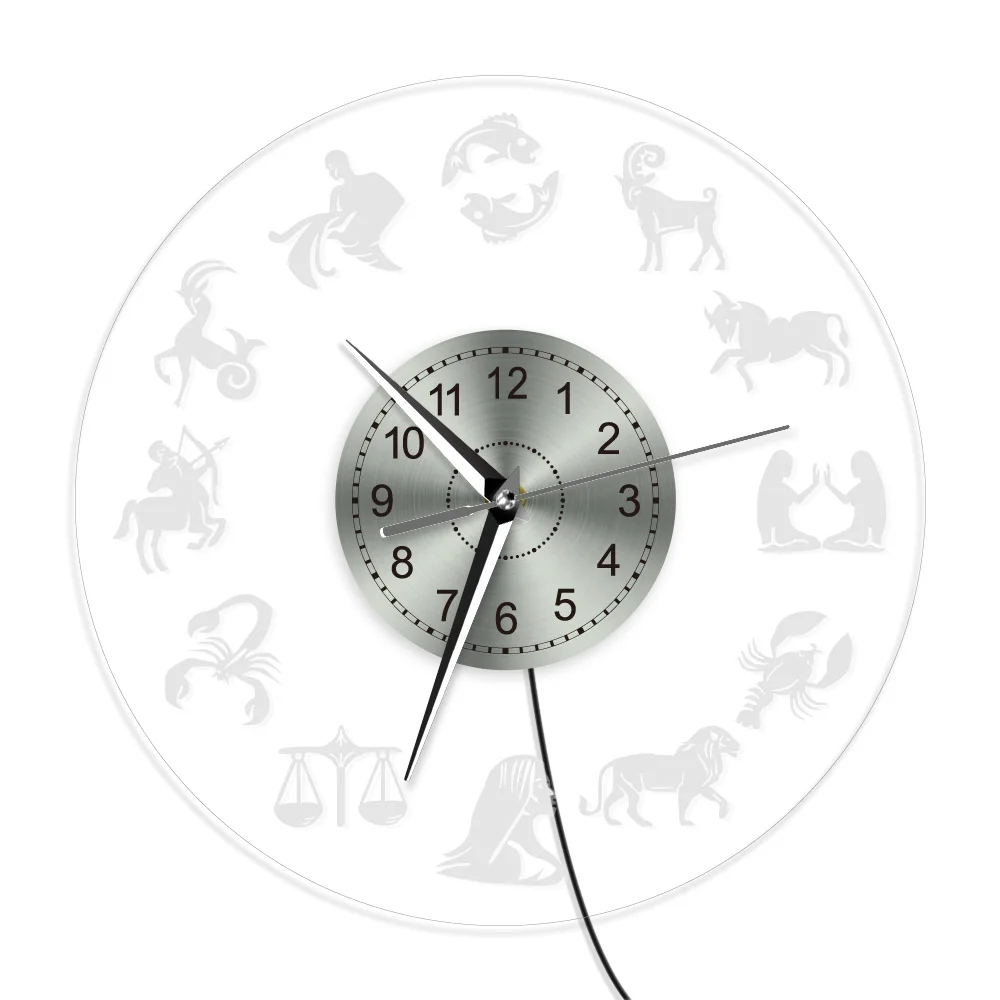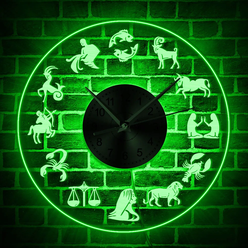 Comprar Signo do zodíaco Luz LED Wall Art Home Decor Relógio de Parede com luz de Fundo Colorido Brilham No Escuro Do Vintage Projeto Da Parede Iluminada relógio Baratas Online Preço.