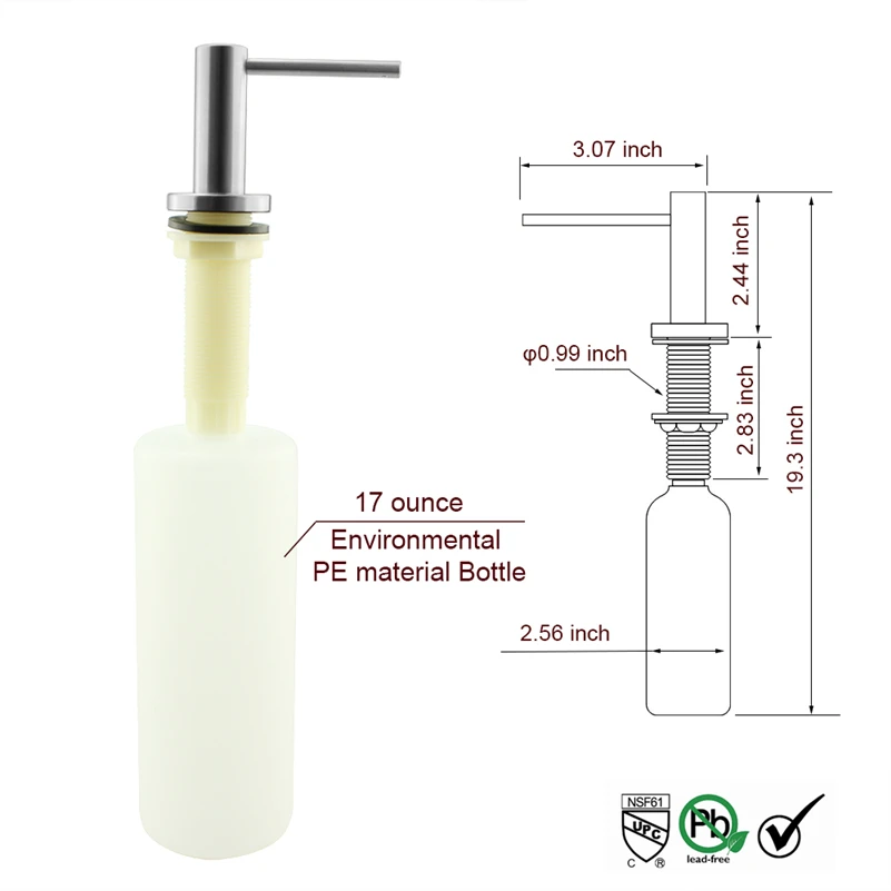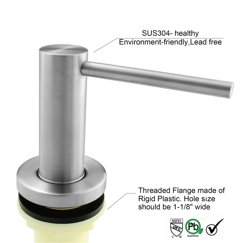Comprar Sólida 304 Aço Inoxidável Escovado Pia Da Cozinha Dispensador de Sabão Líquido Cabeça Spot 17 OZ (500 ML) Garrafa de Convés instalação Baratas Online Preço.