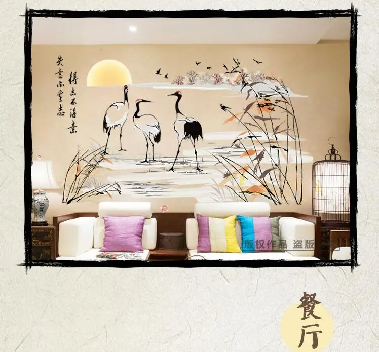 Comprar Tamanho Extra Grande Pintura Chinesa adesivos De Parede De Vinil Para Sala de estar Quarto Adesivos TV Sofá de Jantar de Volta Wallpapers Baratas Online Preço.