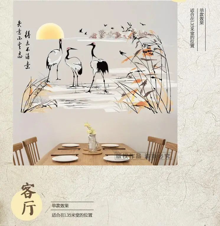 Comprar Tamanho Extra Grande Pintura Chinesa adesivos De Parede De Vinil Para Sala de estar Quarto Adesivos TV Sofá de Jantar de Volta Wallpapers Baratas Online Preço