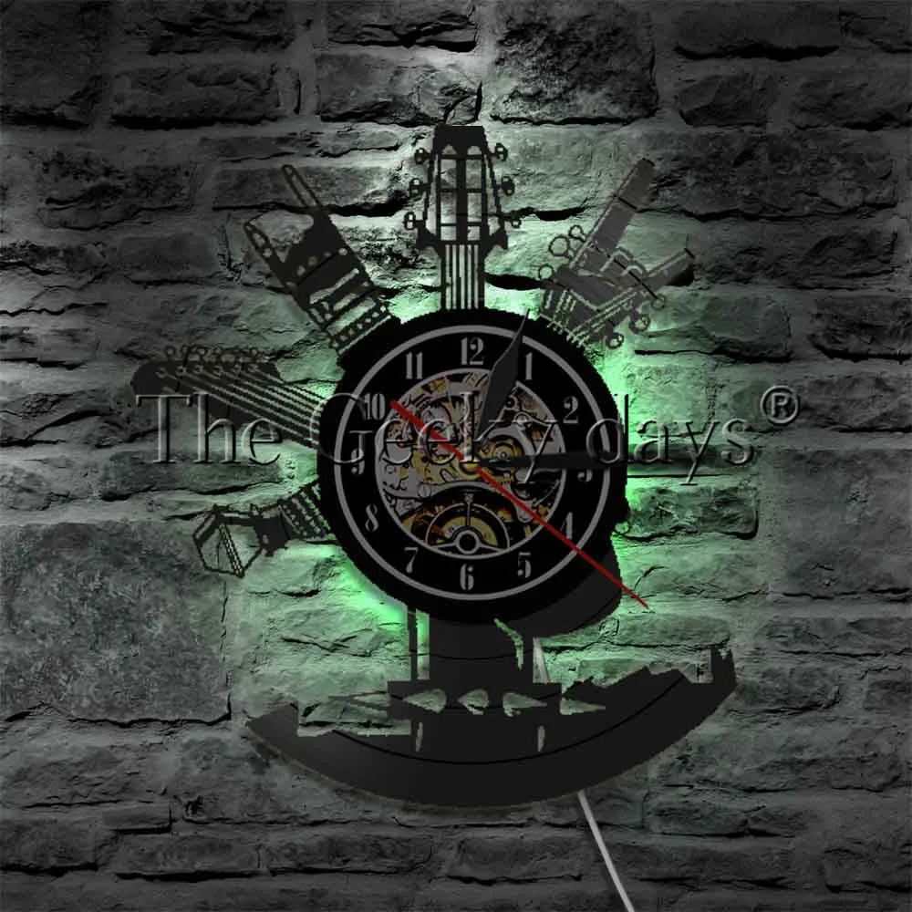 Comprar 1 Pedaço Instrumento Musical Relógio Disco de Vinil Arte Da Parede Do Vintage Rock n Roll Guitarra Relógios de Parede Vinil Home Decor Wall Clocks arte Baratas Online Preço.