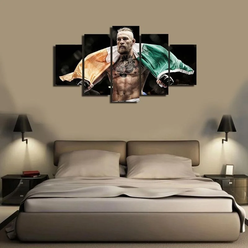 Comprar 2017 JIE FAZER ARTE Sem Emoldurado 5 Pcs Grande HD Óleo Imprimir pintura Em Tela de Conor McGregor Irlandês Esportes Bandeira Cartaz Arte Da Parede Gam Baratas Online Preço