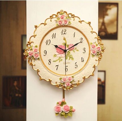 Comprar A010 2017 novo design subiu projeto da flor de quartzo relógio de parede balanço mudo moeden relógios vezes pacote forte Baratas Online Preço.
