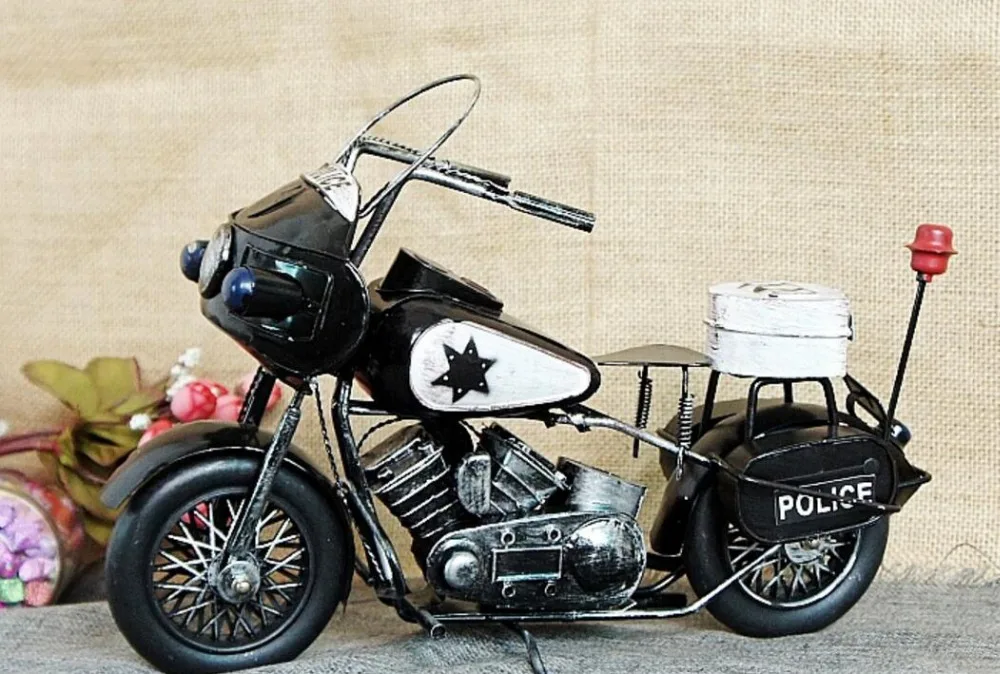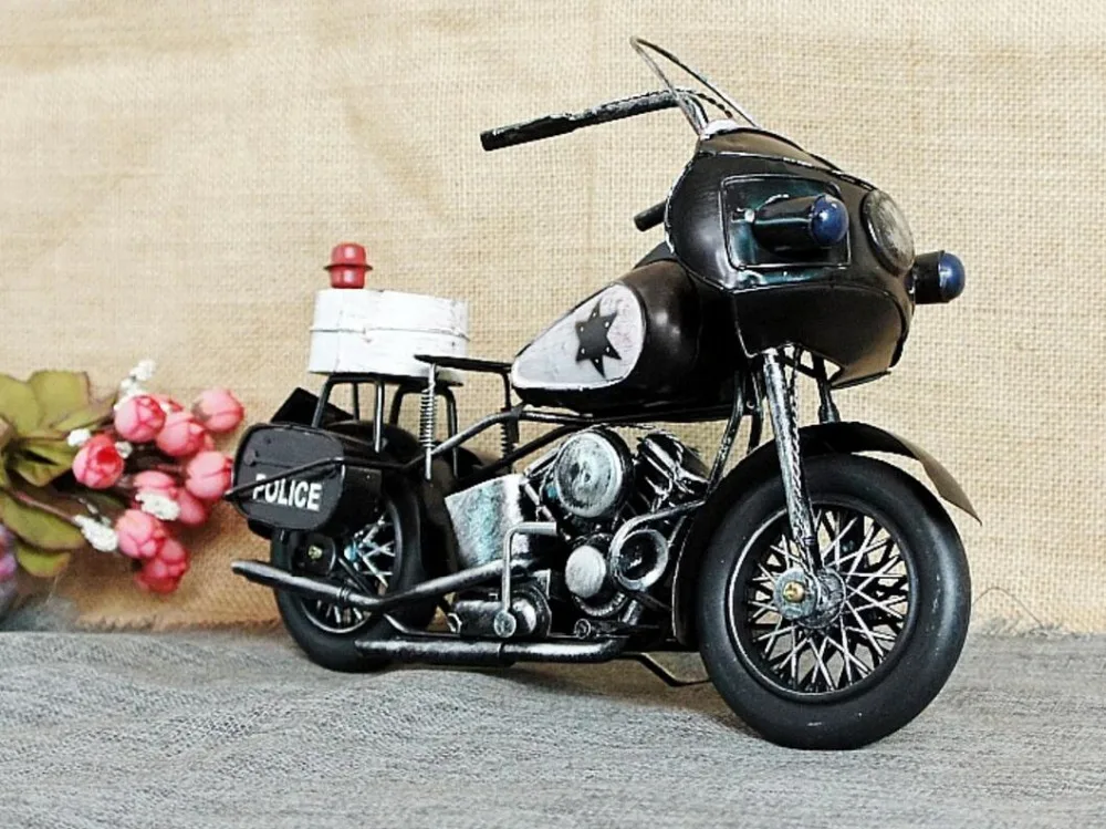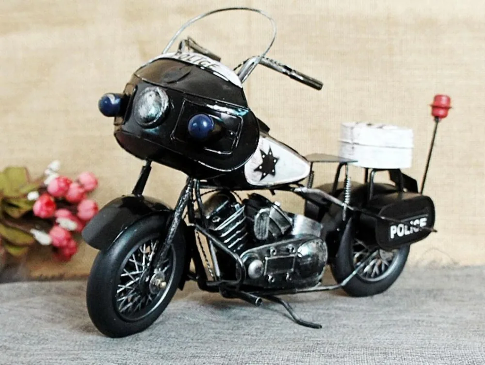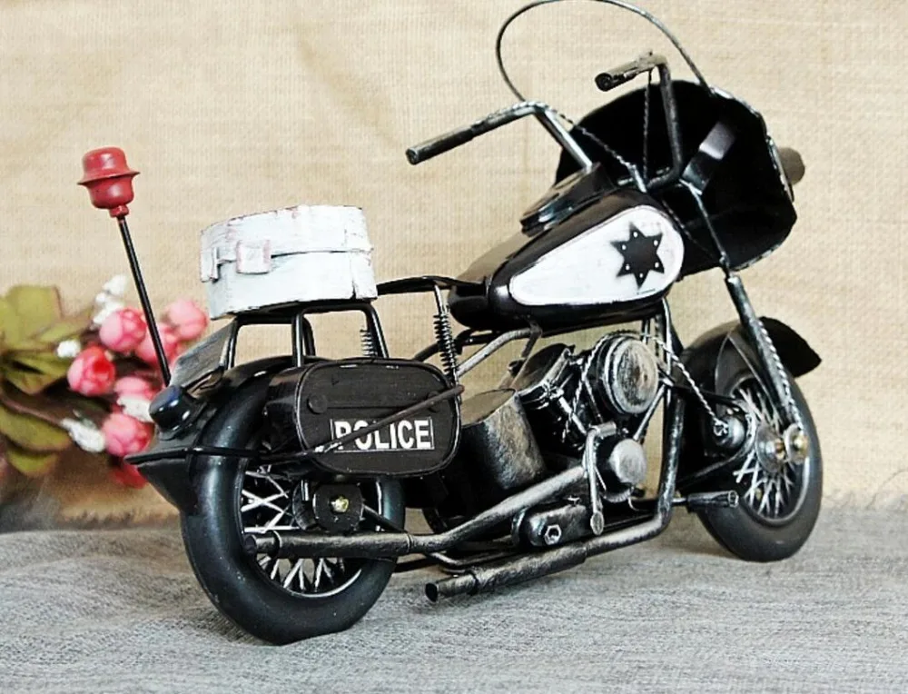 Comprar Afligido do vintage retro antigo polícia clássico hand made do ofício de ferro motocicleta modelo para casa café bar decoração ornamentos Baratas Online Preço.