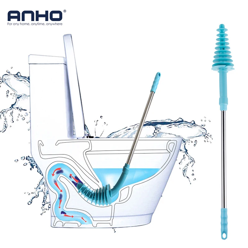 Comprar ANHU Escova de Vaso Sanitário de Aço Inoxidável Êmbolo Longo tratados com Parede Gancho Limpo Draga Tubulação De Esgoto Flexível Entupimento de Ferramenta do Agregado Familiar Baratas Online Preço