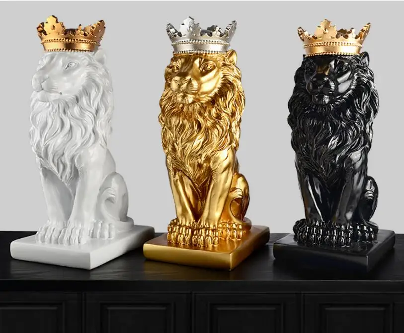Comprar Coroa de ouro estátua do leão escultura escultura de artesanato decoração decorações de natal para casa acessórios de decoração para casa Baratas Online Preço