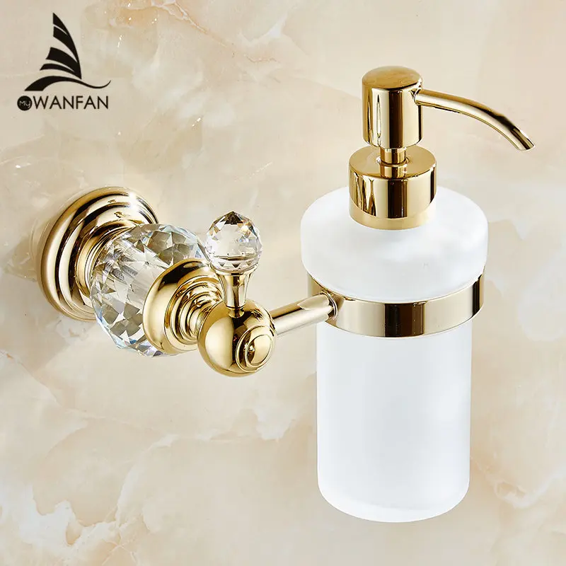 Comprar Dispensadores de Sabão líquido Cor de Ouro de Luxo Parede Dispensador de Sabão Montado Com Recipiente de Vidro Fosco garrafa Produtos de Banho HK 38 Baratas Online Preço