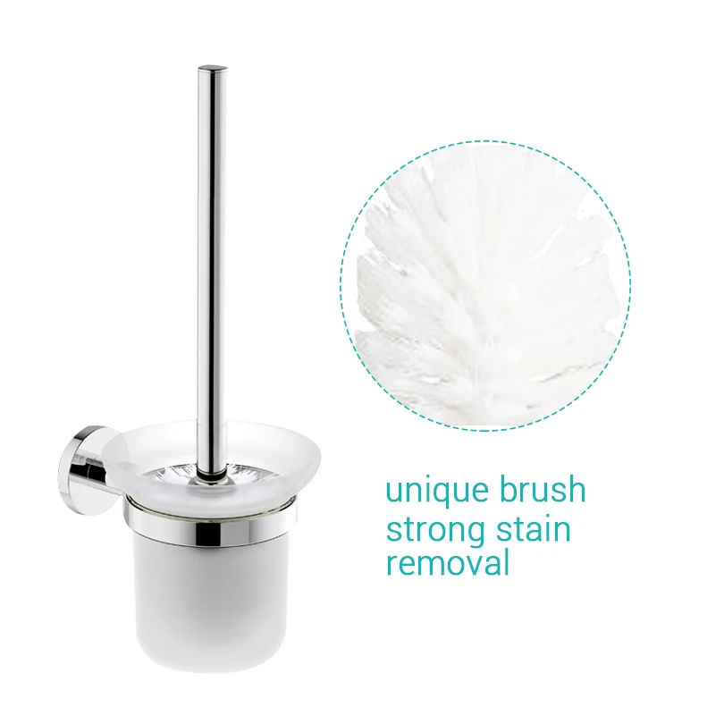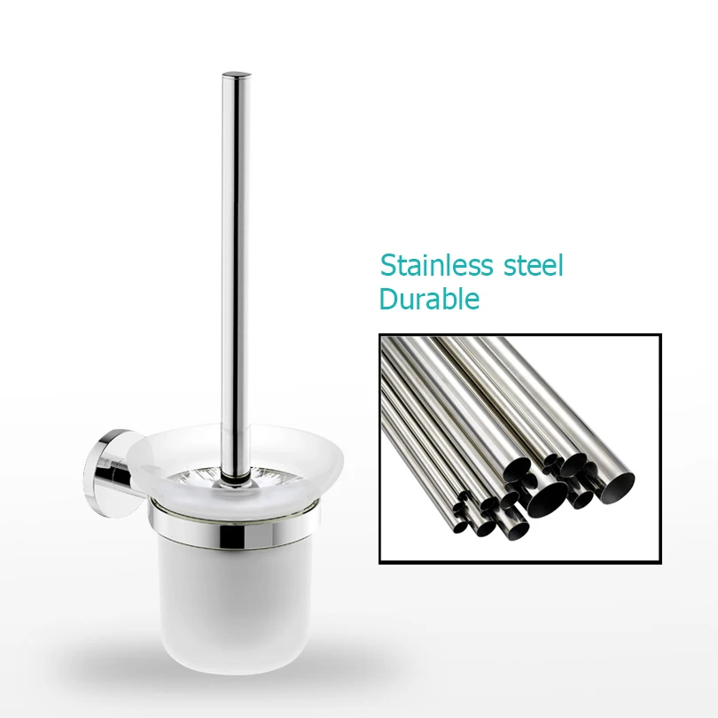 Comprar FiE Montagem Na Parede De Aço Inoxidável Montado Suporte de Copo Escova de Vaso Sanitário definido Com Vidro Temperado De Níquel Acetinado Baratas Online Preço.
