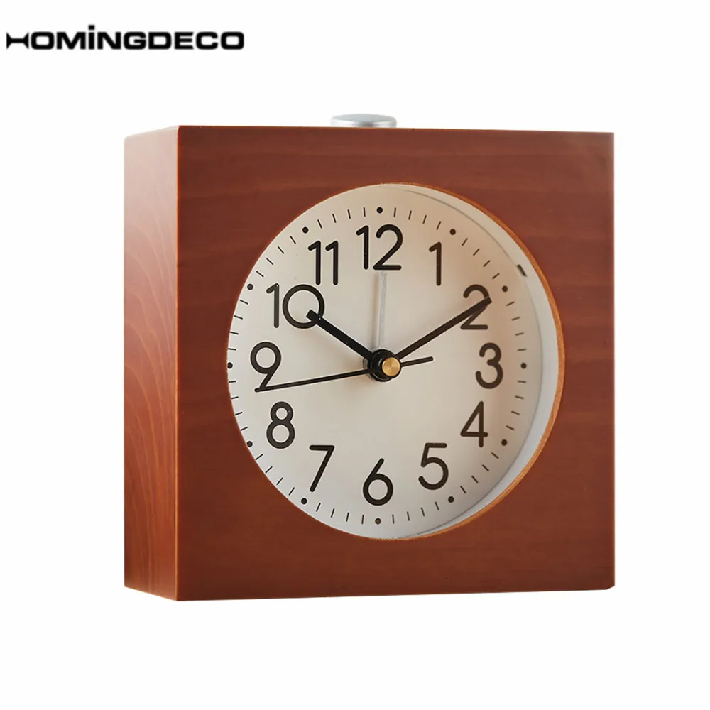 Comprar Homingdeco Quadrado Criativo Snooze Alarme Sweep Movimento do Relógio Mudo Moderno Agulha De Madeira Relógios de Mesa de Alarme Eletrônico Relógio De Mesa Baratas Online Preço.