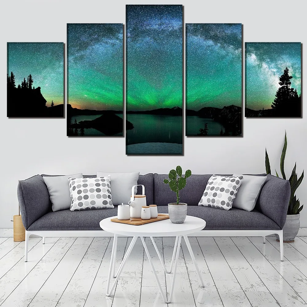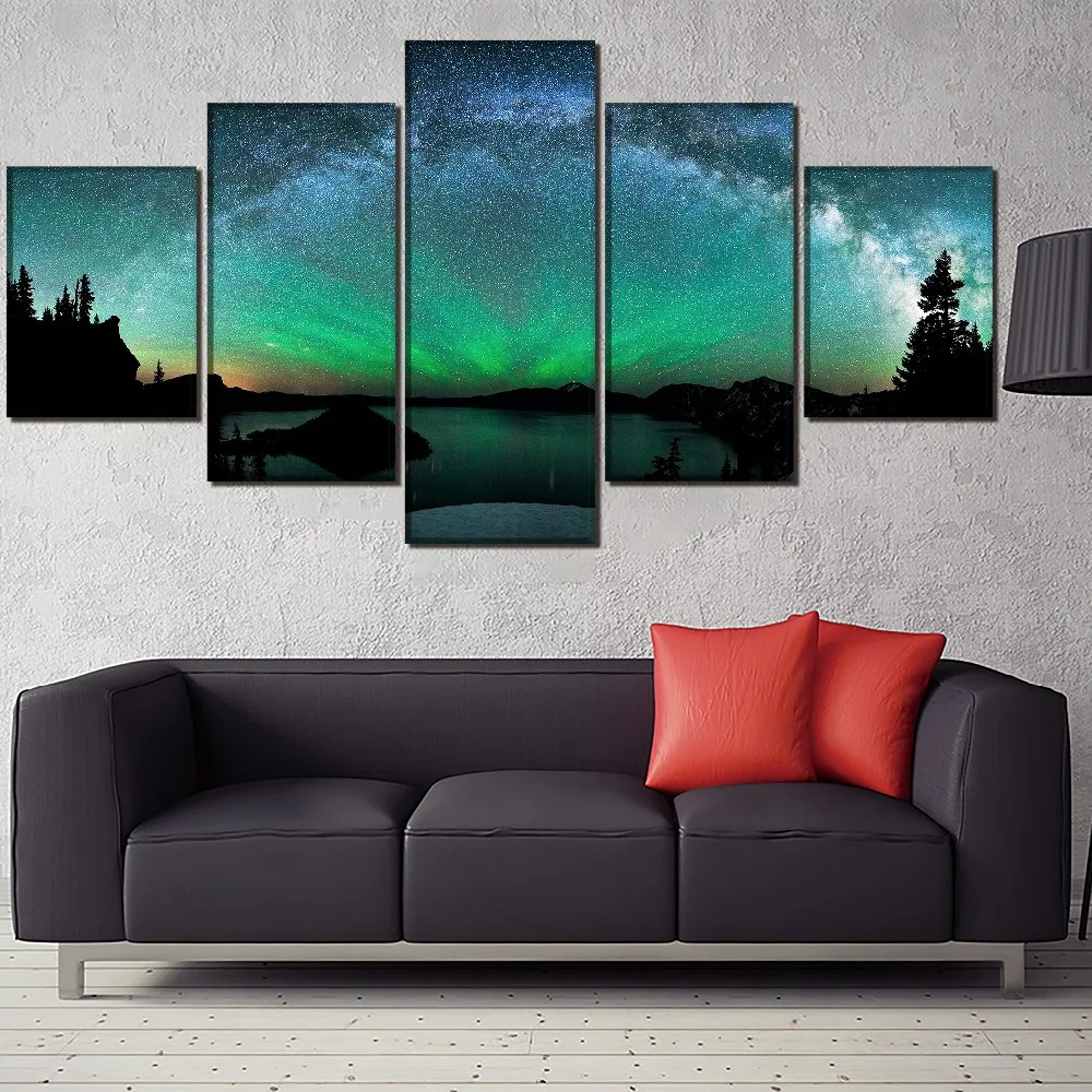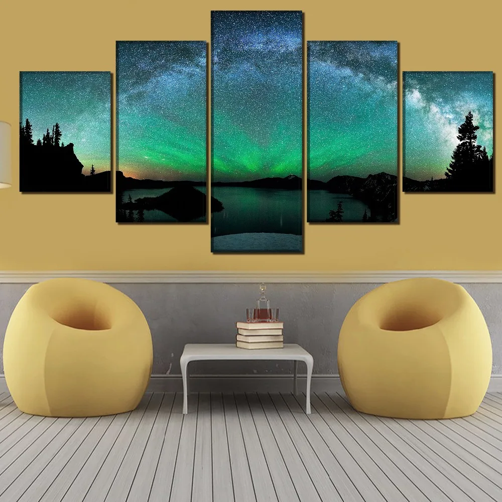Comprar Lona Impressão Pintura 5 Painel Wall Art Home Decor Poster Quadro Aurora Boreal Lake Nature Imagem Da Paisagem do Inverno Baratas Online Preço.