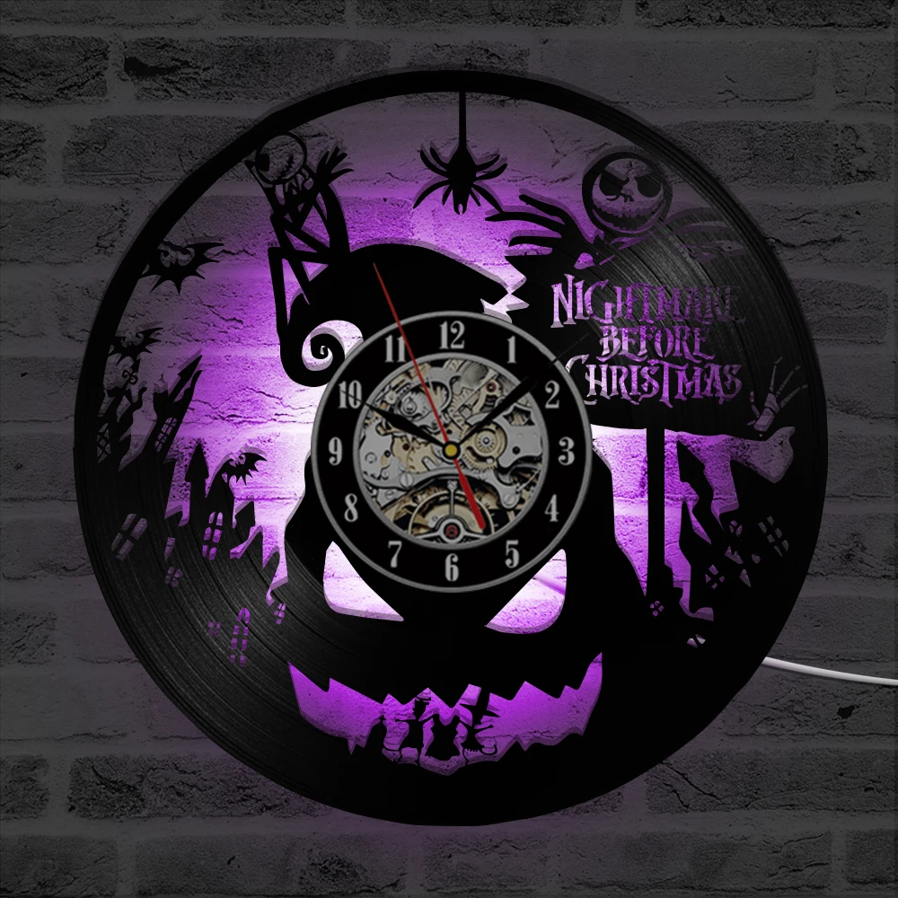 Comprar The Nightmare Before Christmas Theme Registro CD Clock 3D Clássico Hanging Relógio de Parede Preto Oco Criativo Estilo Antigo Relógio LEVOU Baratas Online Preço.