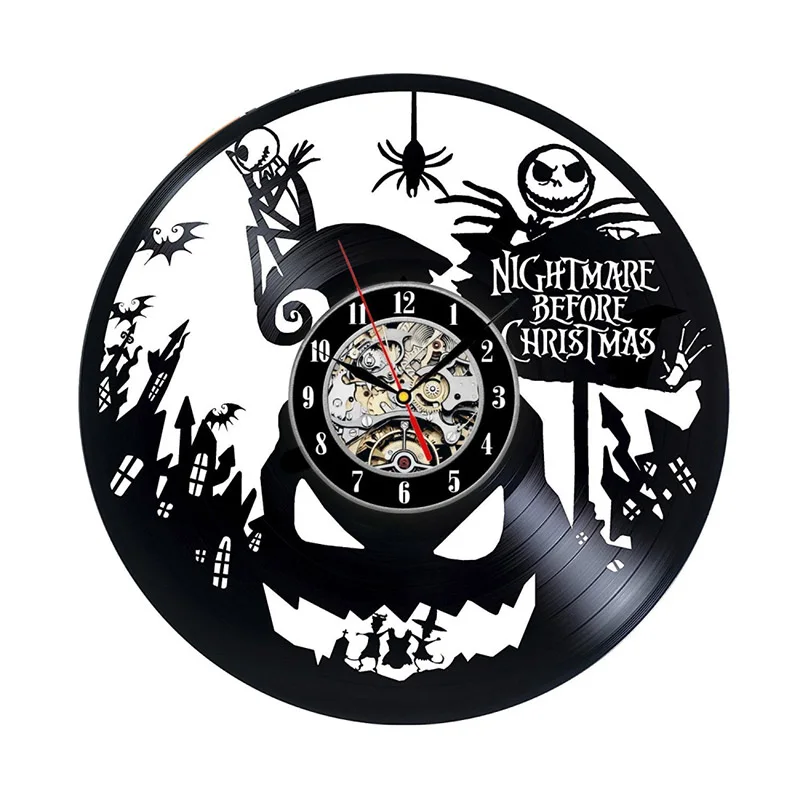 Comprar The Nightmare Before Christmas Theme Registro CD Clock 3D Clássico Hanging Relógio de Parede Preto Oco Criativo Estilo Antigo Relógio LEVOU Baratas Online Preço