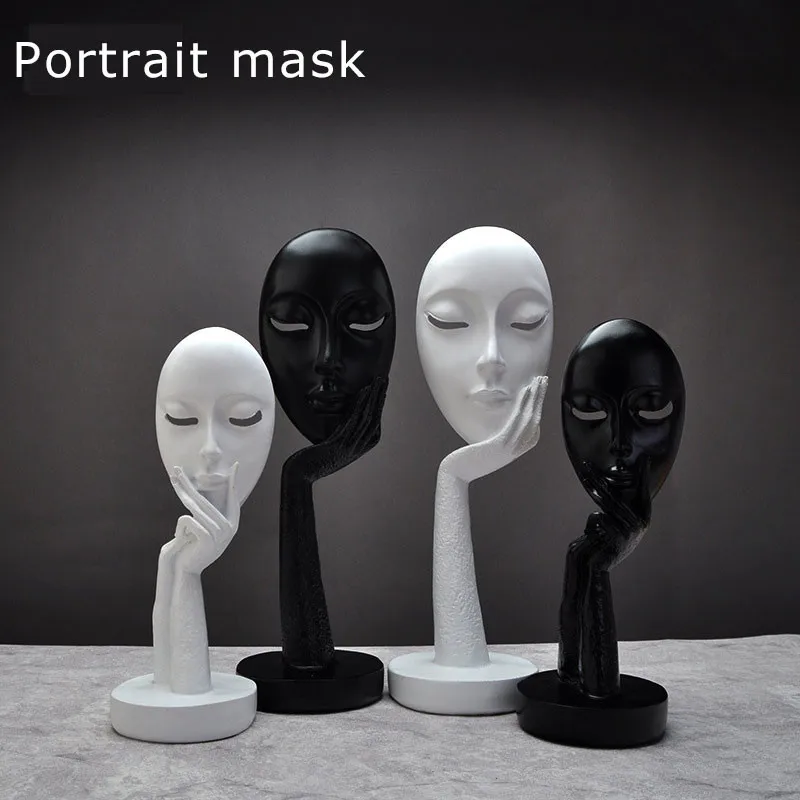Comprar Nórdico Preto Rosto Branco Estatuetas de Resina Enfeites Artesanais Casa Criativa Decoração Retrato Artesanato Máscara Máscaras Pensador Estátuas Baratas Online Preço.