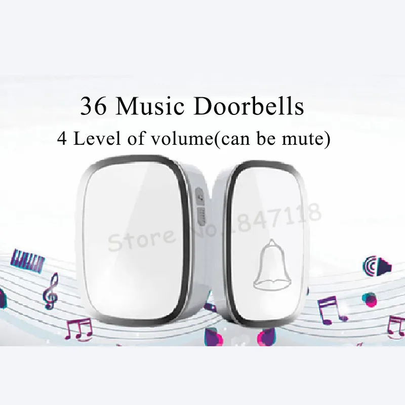 Comprar Novo Branco UE EUA Plug 36 Melodia Levou Anel Campainha Da Porta Campainha Sem Fio À Prova D Água Inteligente AC220V 1 Push Campainhas botão + 2 Receptores Baratas Online Preço