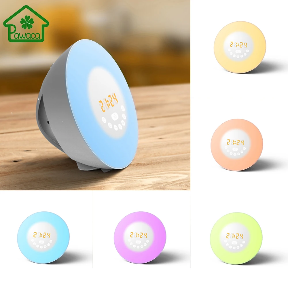 Comprar Novo Despertador Digital com Simulação Do Nascer Do Sol Luzes LED Wake Up Rádio FM Luz Colorida do Sensor de Toque Luz Da Noite Ao Lado lâmpada Baratas Online Preço.