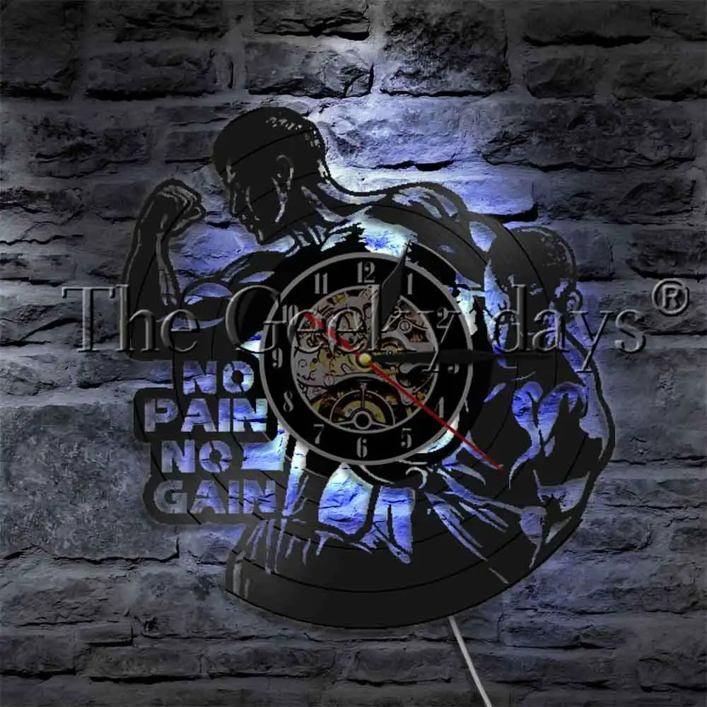 Comprar Peça No Pain no Gain 1 Academia de Musculação do Registro de Vinil Relógio de Parede GINÁSIO Relógio Do Esporte da Aptidão Home Decor Relógio de Parede fisiculturista Presente Baratas Online Preço.