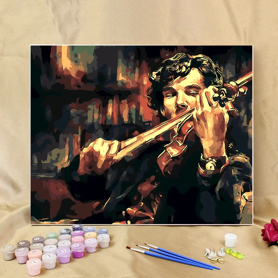 Comprar Play TV Pintura A Óleo Por Números Na lona Sherlock Holmes colorindo Por Números DIY Pintura pelo número Kits para Adultos Baratas Online Preço