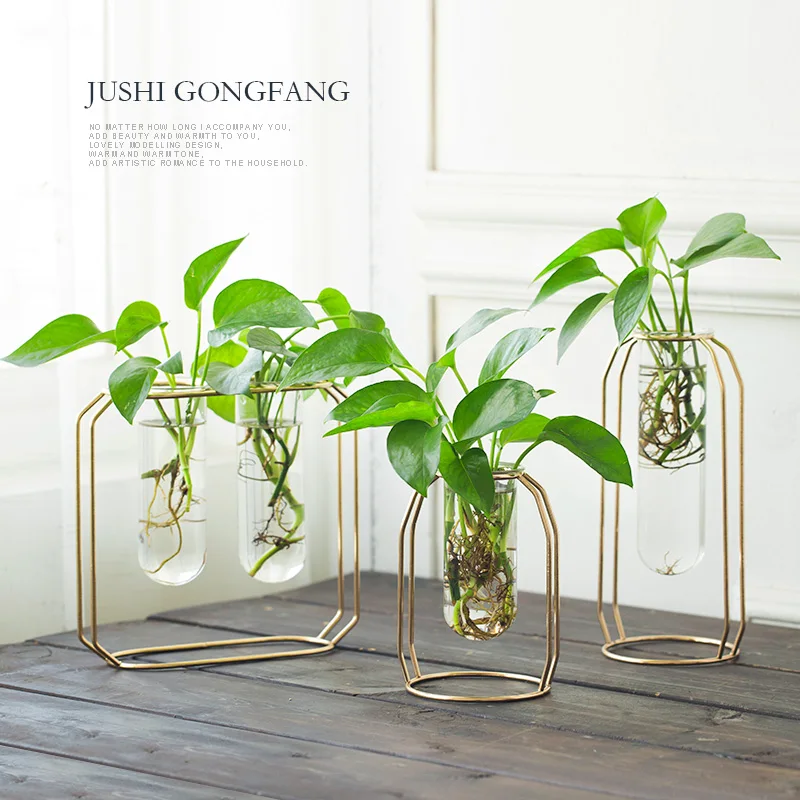 Comprar Prateleira do metal Hidropônico Vaso de Vidro Vasos de Vidro Vaso de Flor Vasos Decorativos Plantadores Vaso Tubo Baratas Online Preço