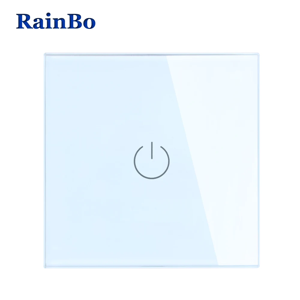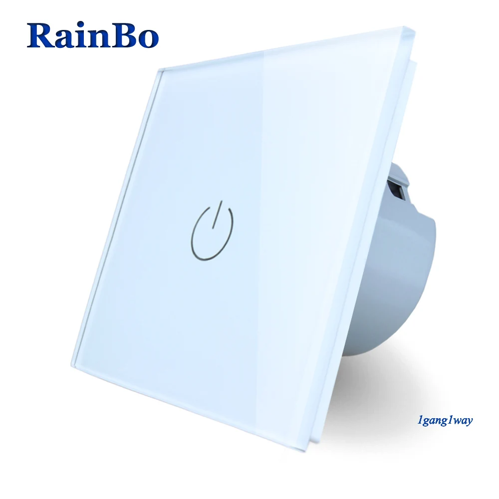 Comprar RainBo Novo Interruptor de Parede Interruptor Do Painel de Vidro de Cristal DA UE Interruptor de Toque Interruptor De Luz de Parede de Tela 1gang1way 110 ~ 250 V lâmpada CONDUZIDA A1911W B Baratas Online Preço.