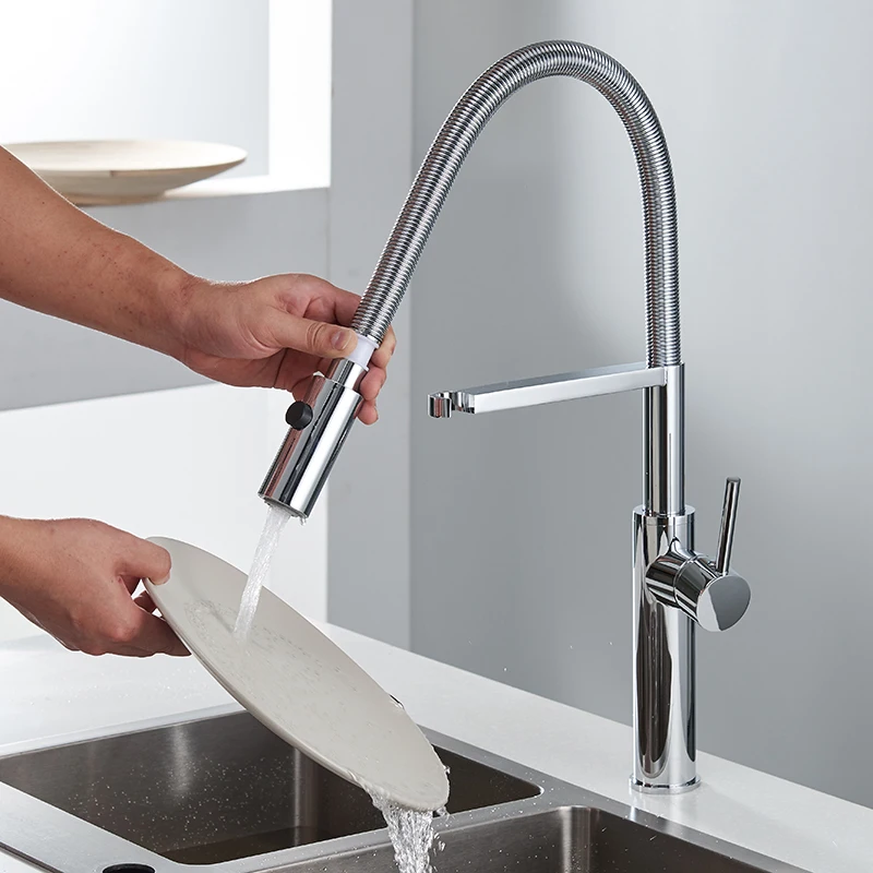 . Melhor Recém Projetar 360 Swivel Latão Single Handle Torneira da cozinha Misturador Torneira Pia Cromo Torneira de Água Quente e Fria LD 10127 Barato Online Preço.