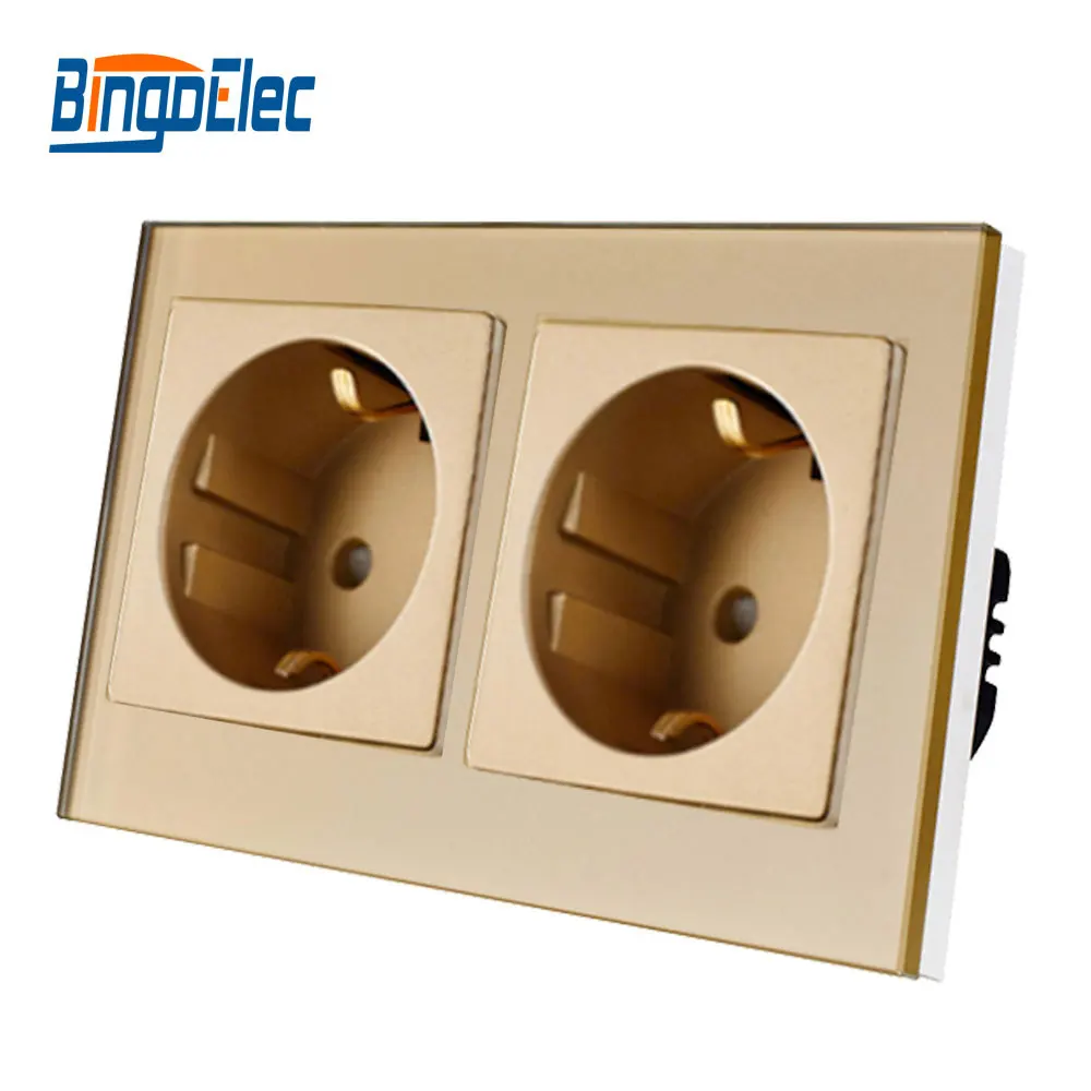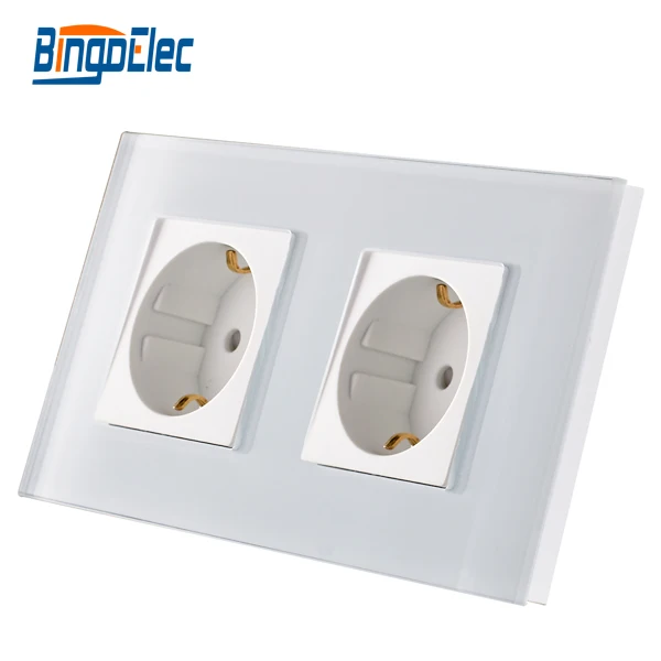 . Melhor Standard double gang soquete de energia DA UE, a alemanha tipo de tomada de parede, Crystal white painel de vidro temperado, 16A soquete de parede, Barato Online Preço.