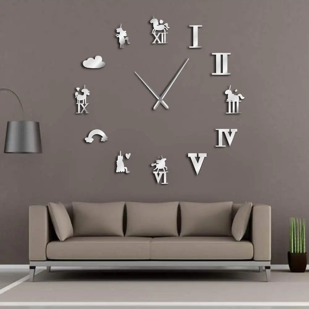 . Melhor Unicórnio Grande Relógio de Parede Íris Nuvem Unicórnios Mágicos Gigante Parede Kid Quarto Sala de Parede do Projeto Moderno do relógio Relógio Arte decoração Barato Online Preço.