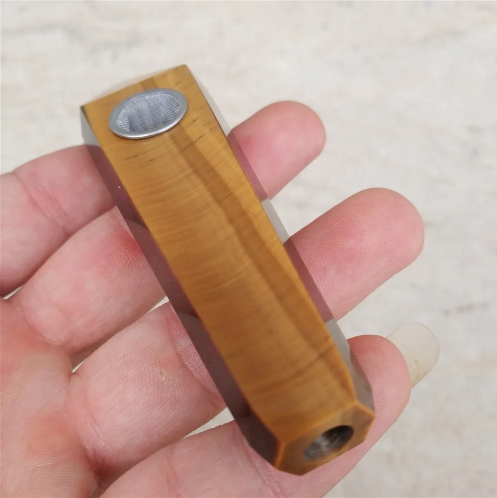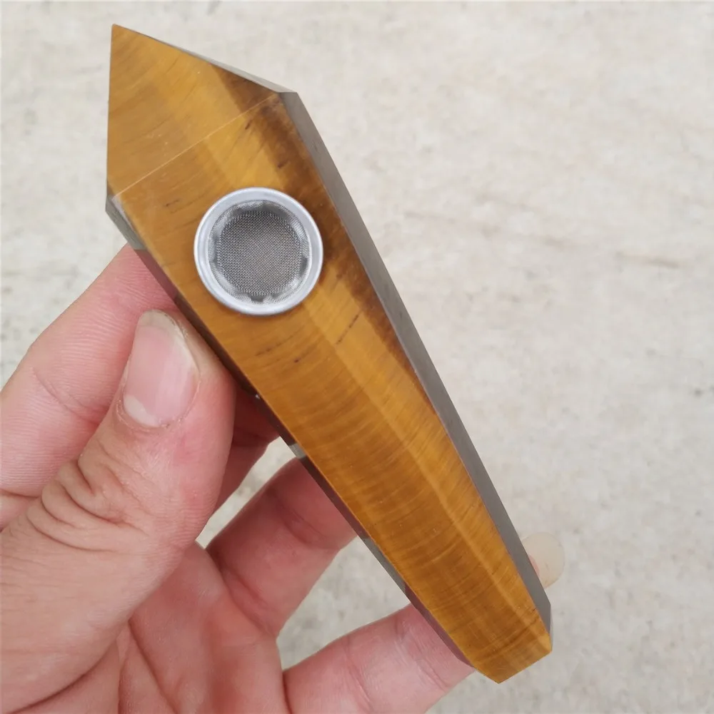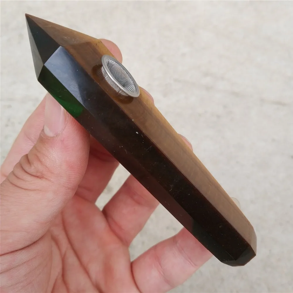 Comprar Varinhas de cura natural ponto de cristal de quartzo único golden tiger eye pedra tubulação de fumo de preços por atacado Baratas Online Preço.