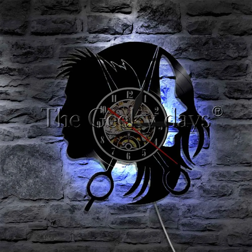Comprar 1 peça Hairstylist Barber Shop Wall Clock Relógio Disco de Vinil Do Cabelo Do Barbeiro do Salão de beleza Luz LED Clock Decoração de Cosmetologia Baratas Online Preço.