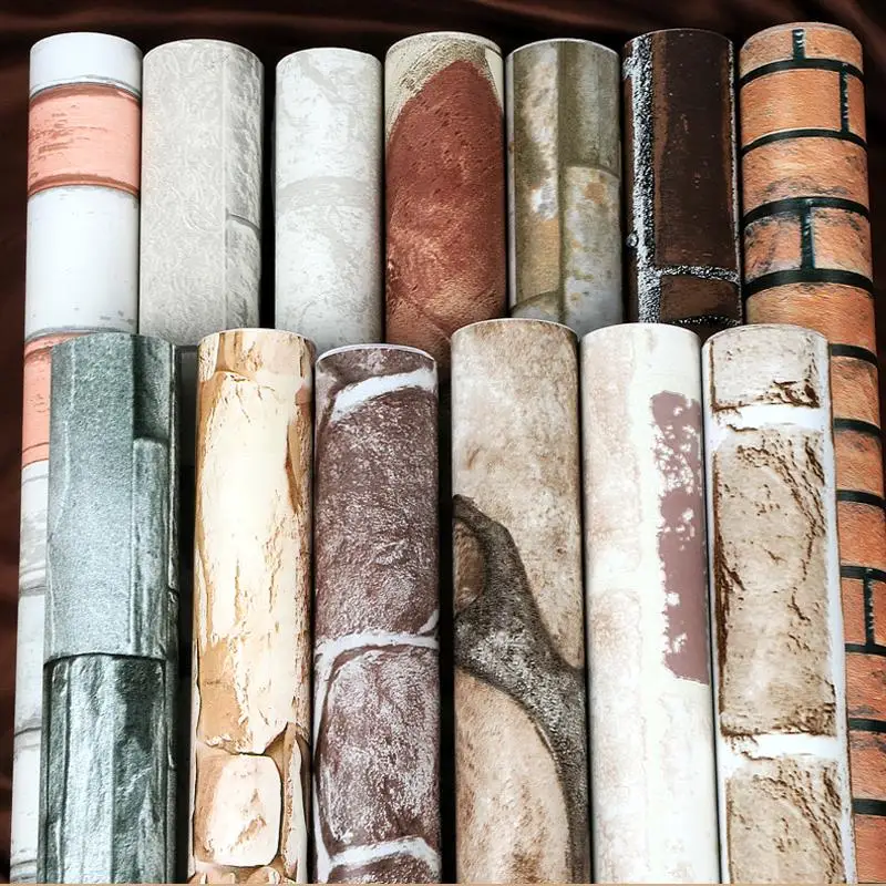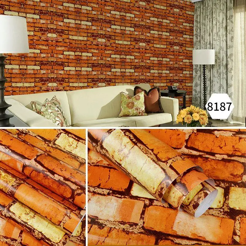 Comprar 45 cm * 10 m Rústico Vintage 3D Faux Tijolo Papel De Parede Rolo de Papel de Parede PVC Vinil papel de parede Retro Loft Industrial Vermelho preto Cinzento Amarelo Lavável Baratas Online Preço.