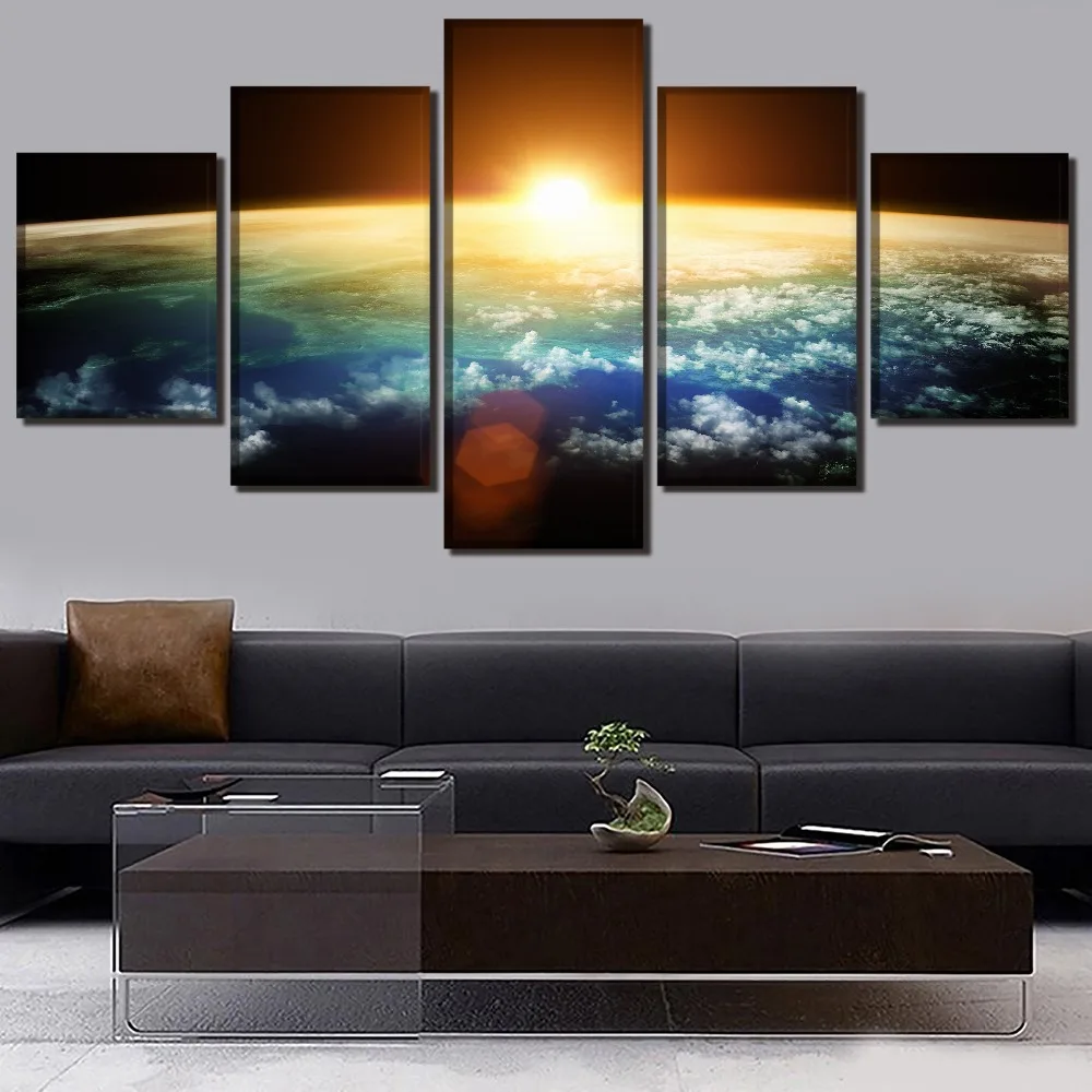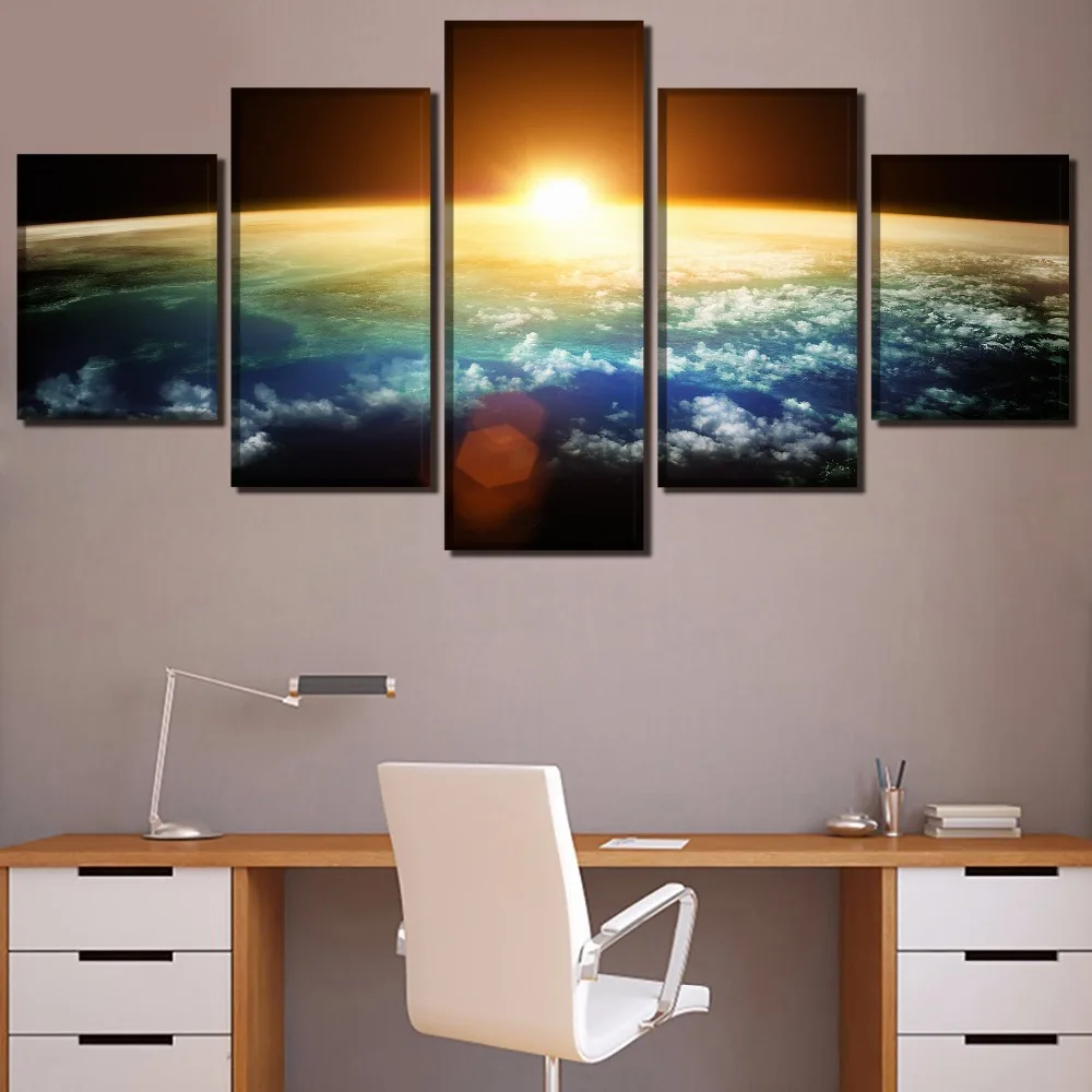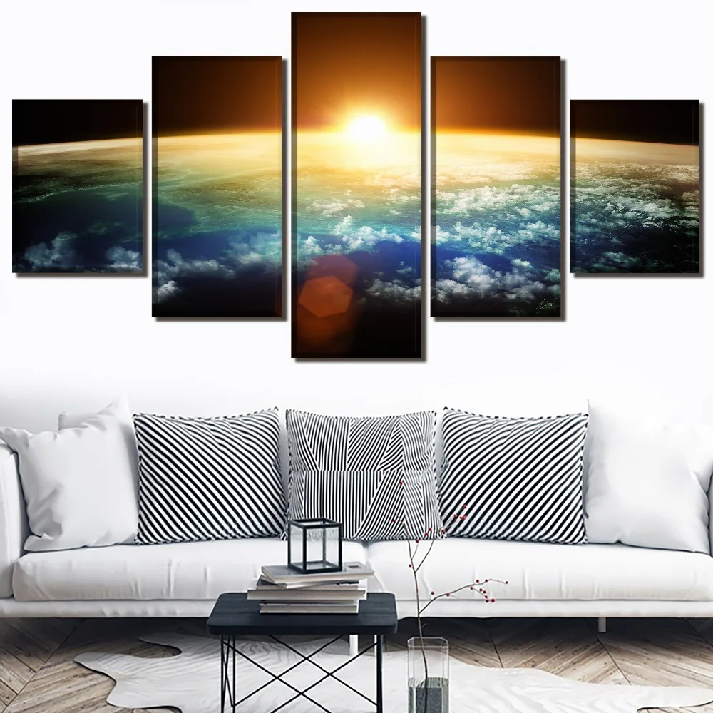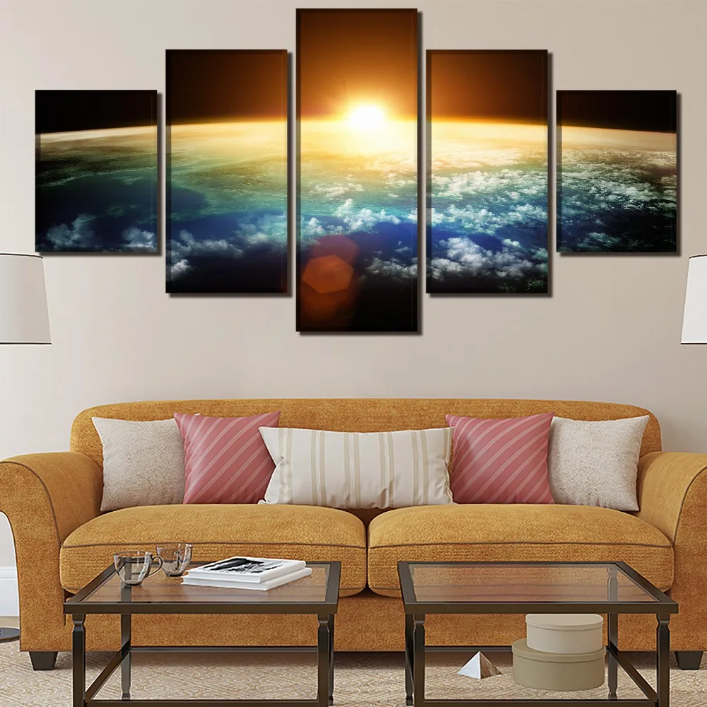 Comprar Fotos lona HD Impresso Para Sala de estar Da Parede da Arte Casa Decorativo 5 Peças Terra Horizonte Pintura Sun Rises Cartaz Quadro Baratas Online Preço