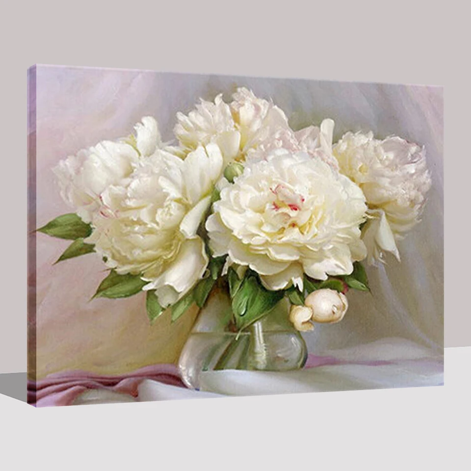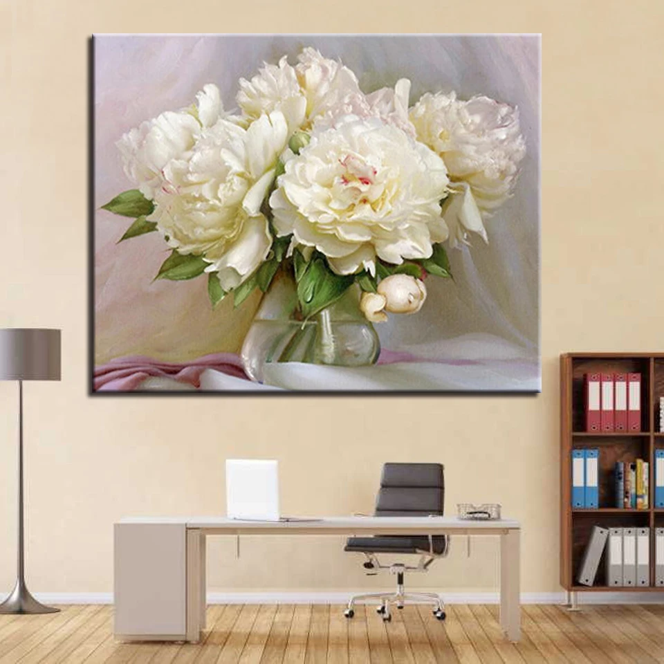 Comprar Frame Acrílico Arte Pintado À Mão Home Decor Grandes Flores Brancas Imagens de arte Pintura A Óleo DIY Por Números Parede Para Sala de estar quarto Baratas Online Preço.
