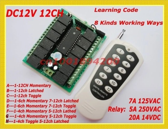 Comprar Frete grátis 12 V 12CH Interruptor de Controle Remoto Sem Fio RF Transmissor receptor Aprender Código 8 Tipos Maneira de Trabalho 315 433 Max 5A 250VAC Baratas Online Preço.