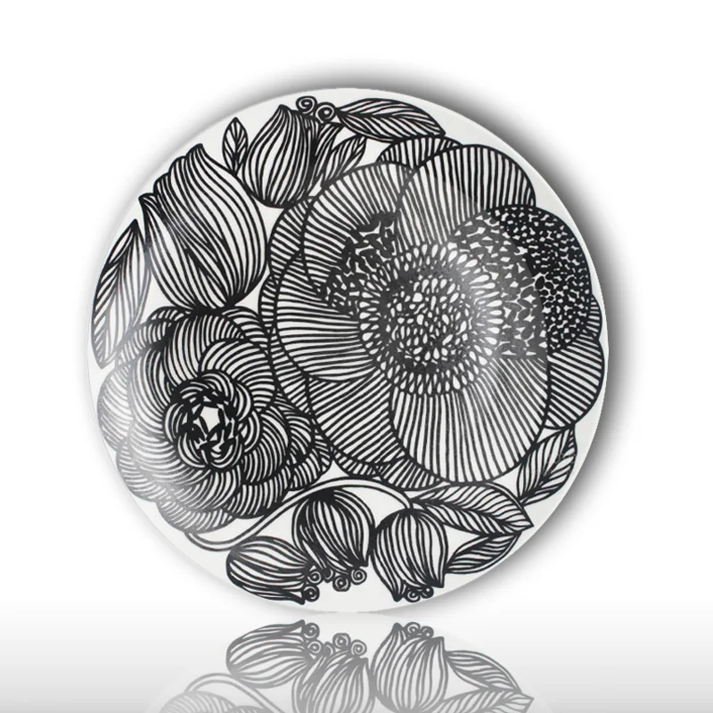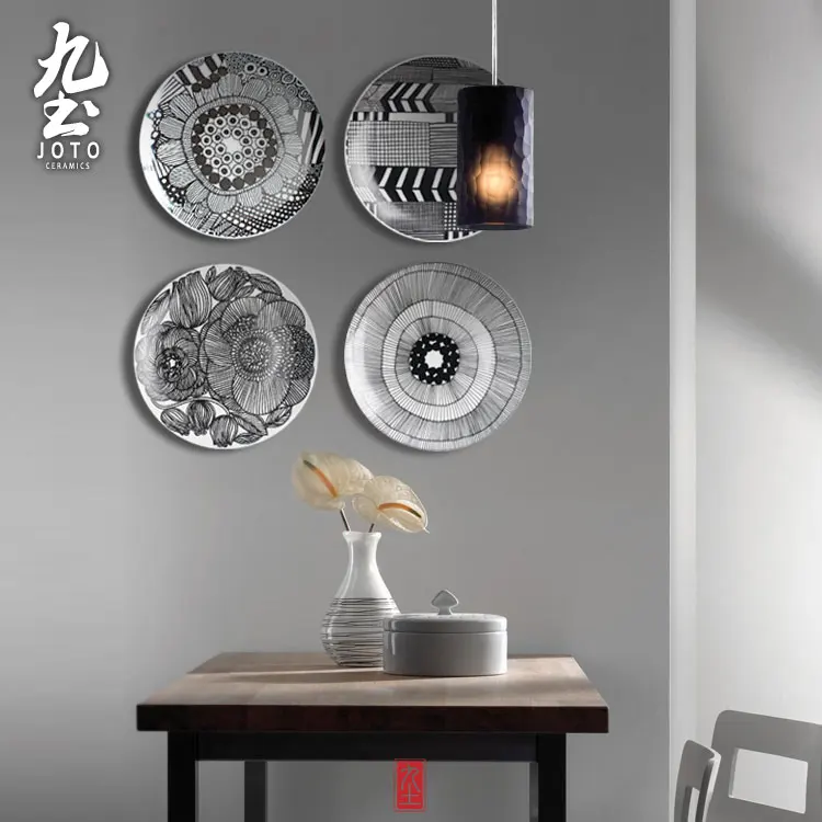 Comprar Moderna pintura mural da parede decorativo pendurado placa de linhas geométricas Simples azul e branco preto estilo jardim home decor artesanato de cerâmica Baratas Online Preço.