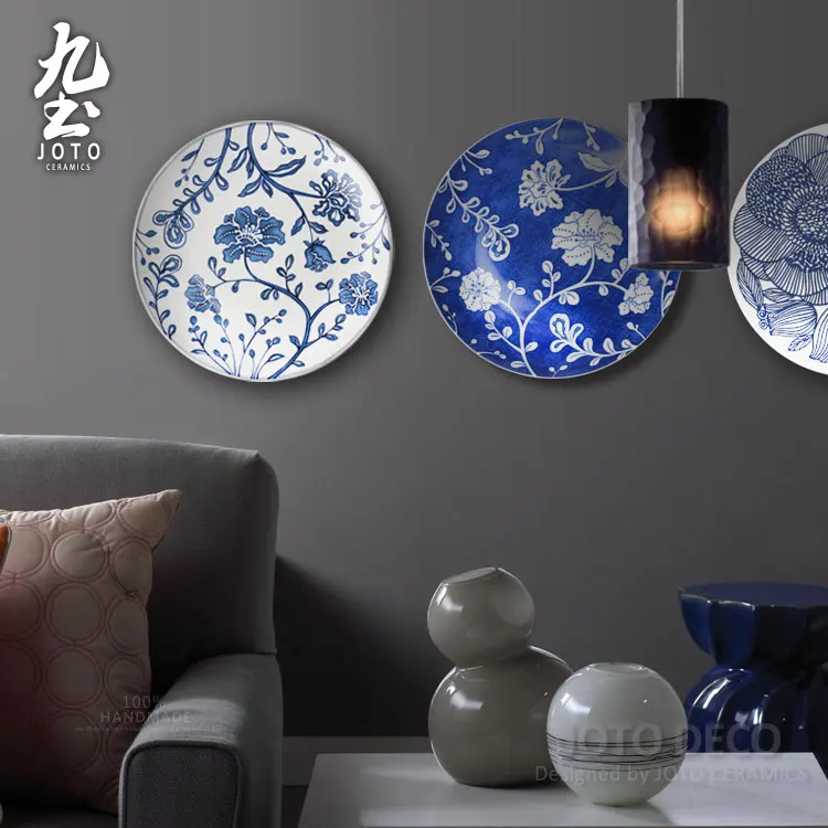 Comprar Moderna pintura mural da parede decorativo pendurado placa de linhas geométricas Simples azul e branco preto estilo jardim home decor artesanato de cerâmica Baratas Online Preço