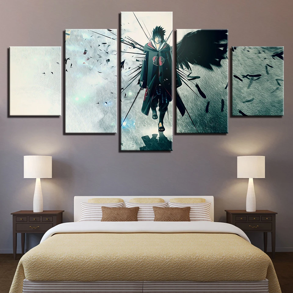 Comprar Quadro 5 Peças Da Arte Da Parede da lona Decoração de Casa Modular Anime Naruto Uchiha Sasuke Pinturas Sala HD Imprime Fotos Baratas Online Preço.