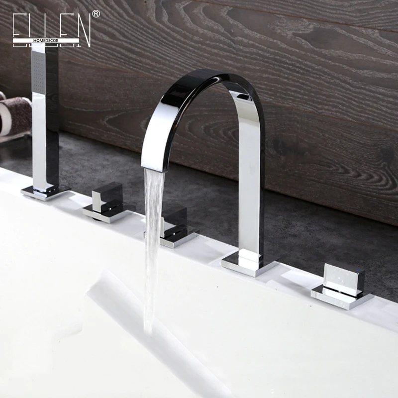 Comprar Torneiras da banheira 5 5 peças Misturador para Banheira Quadrado Buraco Quente e Água Fria Guindaste com Mão Chrome Chuveiro terminou 7911 Baratas Online Preço.