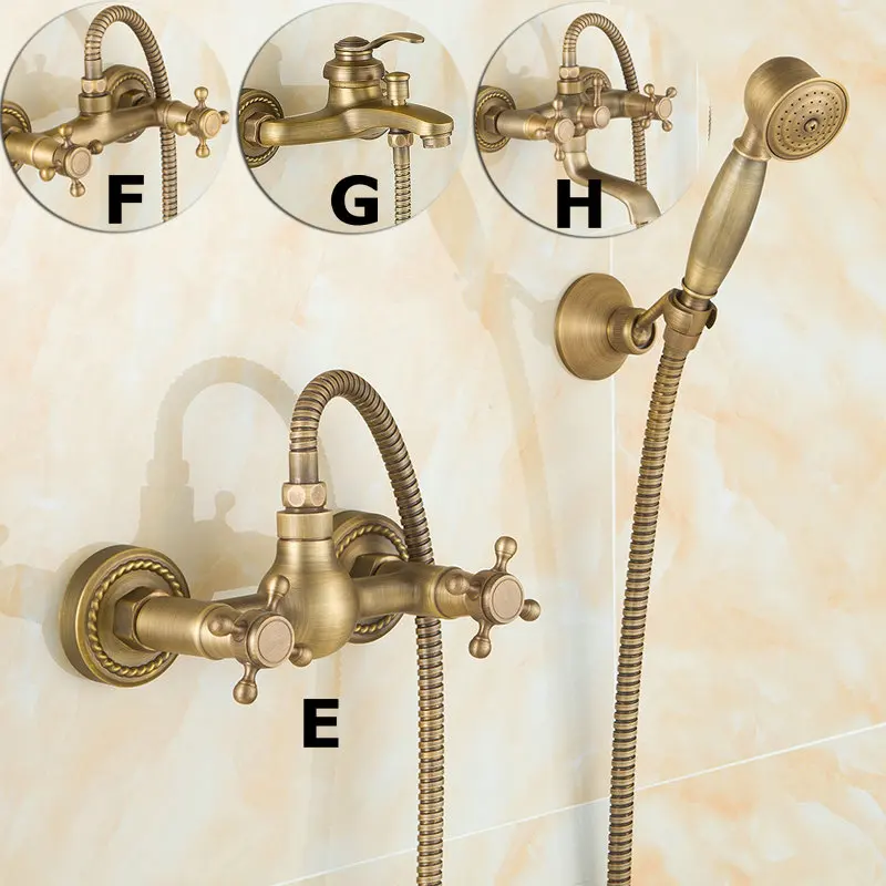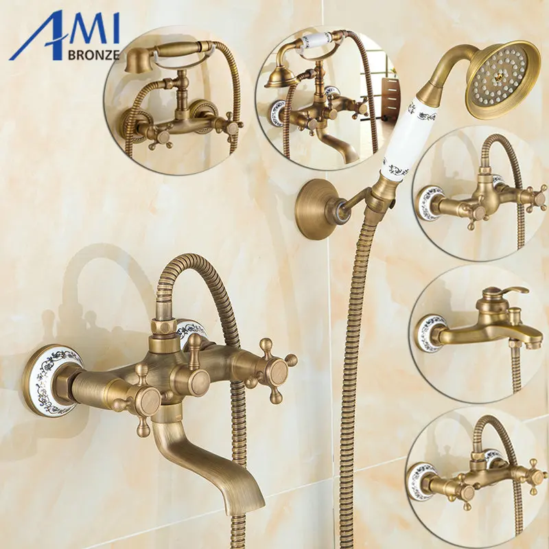 Comprar Torneiras de Banho De Bronze antigo Escovado Fixado Na Parede Do Banheiro Bacia Toque Mixer Guindaste Com Cabeça de Chuveiro de Mão Bath Torneira Do Chuveiro Baratas Online Preço.